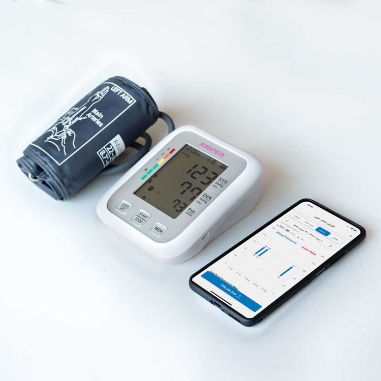 به کمک فشارسنج جامپر مدل JPD-HA120 بلوتوثی میتوانید میزان فشار بالا و پایین خون و ضربان قلب را به دقت اندازهگیری کرده و به کمک فناوری بلوتوث در گوشی موبایل خود ذخیره کنید. ثبت خودکار این نتایج در نرم افزار فارسی سیناکِر (SinaCare) و نیز اپلیکیشن انگلیسی Jumper Health (هم اندروید و هم IOS) به شما کمک میکند تا تغییرات فشارخون خود را در قالب نمودارهای هفتگی و ماهانه بررسی کرده و از عوارض احتمالی فشارخون بالا مانند آسیب به کلیهها یا سکته جلوگیری کنید.